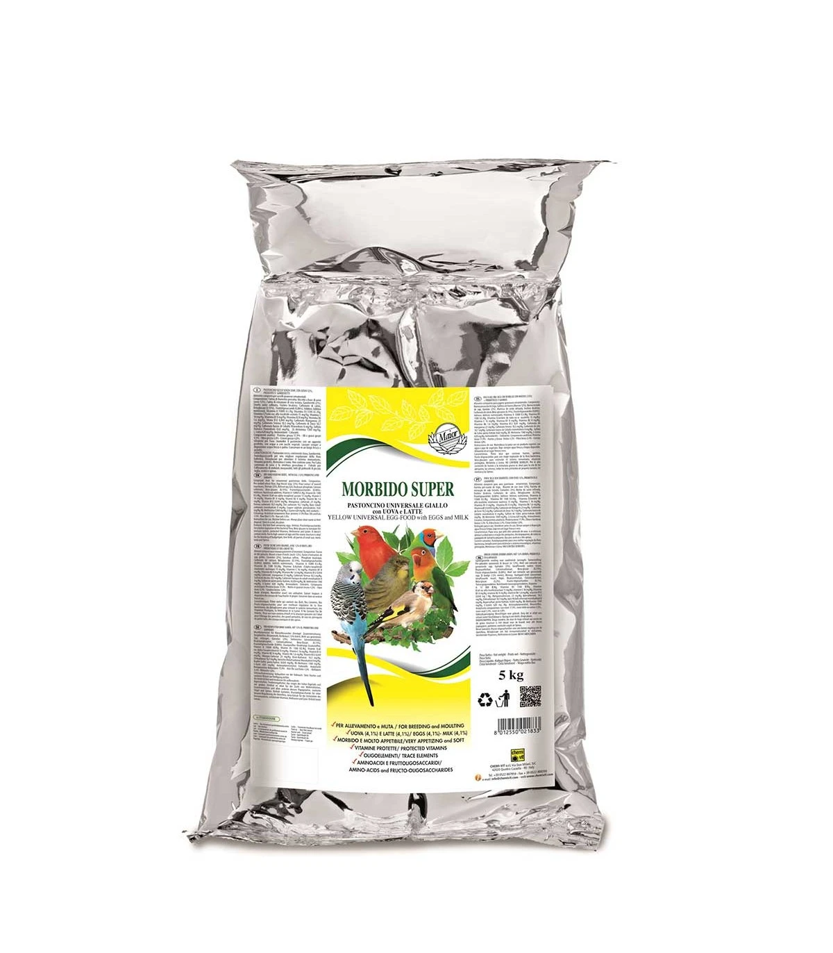 CARATTERISTICHE: MORBIDO SUPER è un alimento dotato di notevole appetibilità indicato per tutte le specie di uccelli granivori ornamentali, scientificamente bilanciato e composto esclusivamente di ingredienti di primissima qualità ; tutto ciò rende il prodotto molto digeribile e adatto sia per gli adulti che per i novelli.