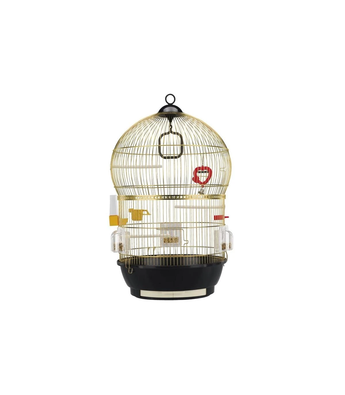 Bali è dotata di cappuccio sul tetto per possibile aggancio e viene venduta completamente accessoriata: all’interno troverete altalena e specchio-gioco con campanellino, posatoi in plastica, beverino, pinza per il cibo e mangiatoia porta pastoncino. Le speciali mangiatoie girevoli Brava 1, inoltre, realizzate in plastica trasparente, sono davvero pratiche: progettate in modo da poter essere girate di 180°, possono essere riempite facilmente dall’esterno, senza lasciare alcuna apertura da cui l’uccellino possa scappare. Gli utili bordi di cui sono dotate impediscono al cibo di cadere al di fuori della gabbia.