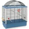 Completa di accessori quali posatoi in plastica ricopetti in gomma, mangiatoie girevoli ed estraibili Brava 2, beverino, pinze per il cibo e specchio-gioco.