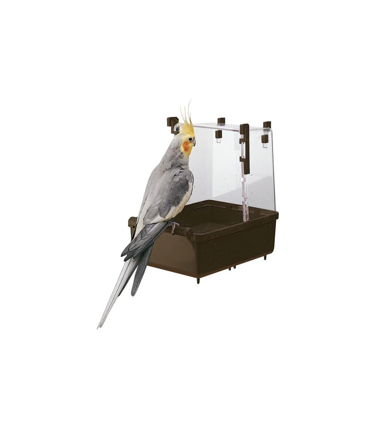 Acquistabile come accessorio, L 101 è un bagnetto in plastica per pappagalli che può essere inserito all’interno delle gabbie per uccelli e fissato facilmente in modo saldo tramite pratici agganci. Provvisto di una spaziosa base di appoggio con bordo contenitivo per contenere l’acqua e di un utile posatoio per uccelli, è inoltre dotato di una piccola capottina in plastica trasparente per evitare la fuoriuscita di schizzi e osservare i vostri piccoli volatili mentre sguazzano felici.