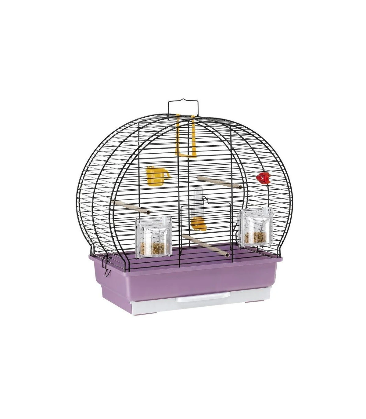 Luna 2 è una gabbietta a base rettangolare ideale per ospitare uccelli come canarini o piccoli esotici. La particolare struttura in rete metallica verniciata di colore nero ha una forma leggermente arrotondata per fornire agli uccelli maggiore spazio abitativo. Dotata di maniglia per facile trasporto, la gabbia per uccelli Luna 2 è corredata di tutti gli accessori necessari per assicurare grande comfort ai vostri amici pennuti. All’interno troverete infatti un beverino in plastica, due mangiatoie girevoli ed estraibili Brava 1, alcuni posatoi in plastica, un’altalena per il gioco, pinza per il cibo e una mangiatoia per pastoncino.