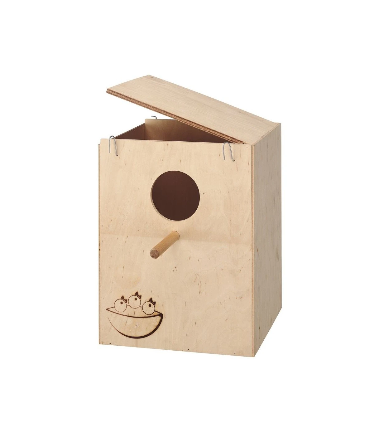 Realizzati con legno certificato FSC™, proveniente cioè da foreste gestite in maniera corretta e responsabile secondo rigorosi standard ambientali, sociali ed economici e altre fonti controllate, i nidi per uccelli sono indispensabili per permettere ai volatili di nidificare in tutta tranquillità. Dotati di appositi ganci in metallo, possono essere agganciati a tutte le gabbie di Ferplast in sostituzione di una delle portine dell’habitat. Hanno una simpatica decorazione a tema sul fronte e comodo coperchio apribile per la pulizia. Disponibili in diversi formati, sono forniti di posatoio e di apposito foro d’entrata per permettere un facile accesso al pennuto. A seconda del modello, il foro d’ingresso ha un diametro variabile dai 5 agli 8 cm. I nidi Large ed Extra Large, ad esempio, sono particolarmente adatti a calopsiti, parrocchetti e cocorite.