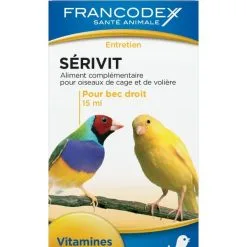Serivit – Vitamine e oligoelementi per uccelli col becco dritto – dona dinamismo e vitalità agli uccelli con un becco dritto e stimola gli uccelli in convalescenza.