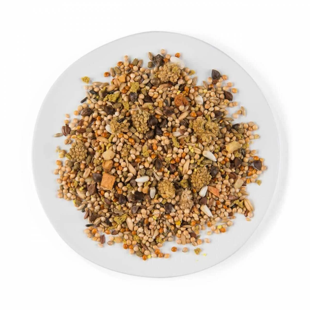 Contiene semi di lino, per piume luminose e facili mute. I probiotici aggiunti contribuiscono a una buona digestione. I gusci d’ostrica schiacciati contribuiscono a una buona digestione e sono un’ottima fonte di calcio.