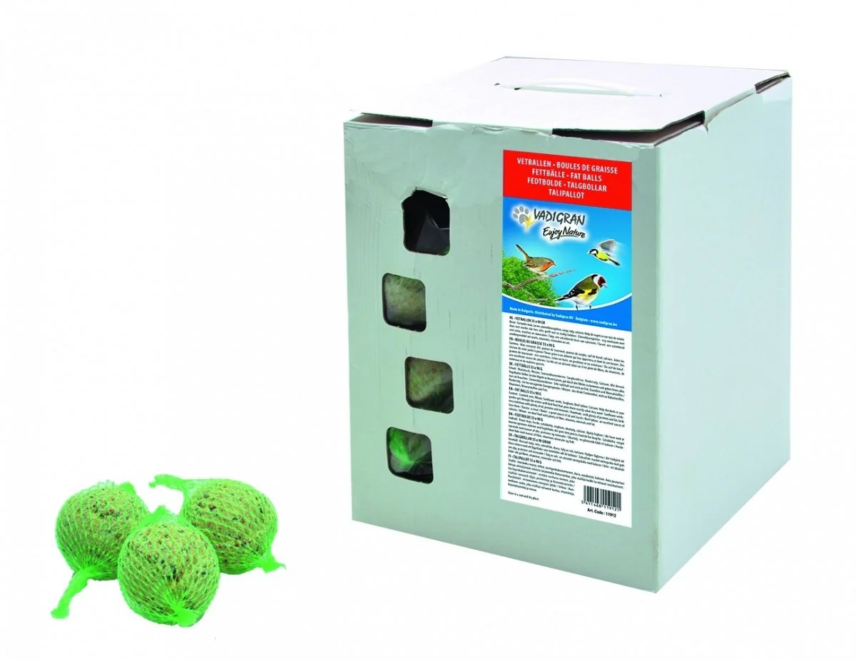 – Box risparmio 50+5 gratuite palle di grasso nella loro retina. – Palle di grasso da 90g l’unità – Ideale per nutrire gli uccelli selvatici (cinciallegre per esempio)