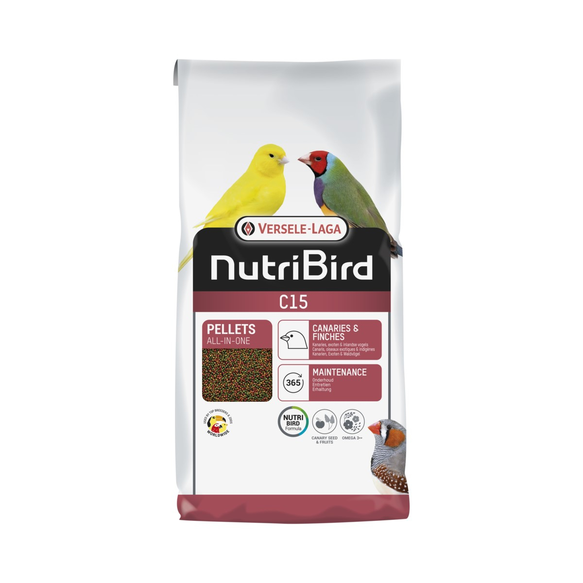 Caratteristiche del pellet estruso NutriBird C15 per canarini, uccelli esotici e nativi: