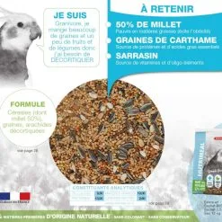 Sviluppato in Francia con un veterinario e composto al 100% da materie prime di origine naturale, senza coloranti, senza conservanti, Zolux Nutrimeal è composto, tra l’altro, da semi di cartamo: fonte di proteine e acidi grassi essenziali; pur essendo ricco di miglio noto per essere povero di grassi.