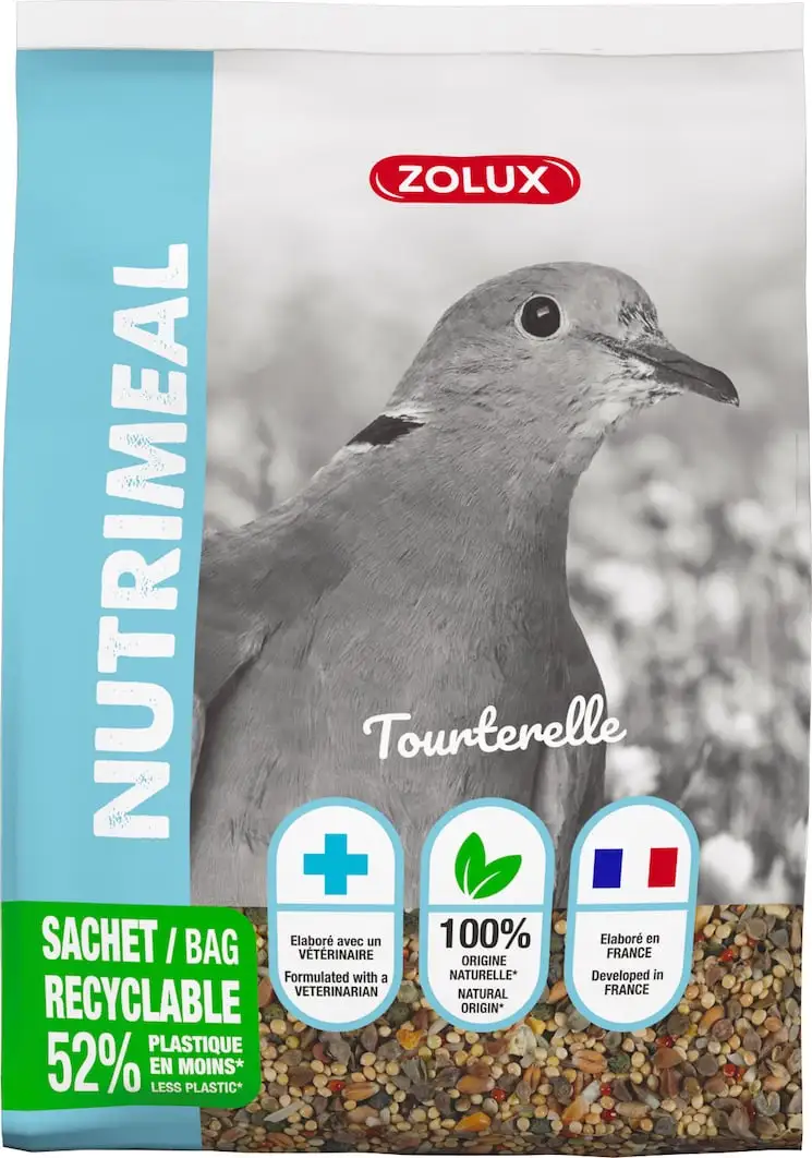 Confezionato in Francia e sviluppato in Francia con un veterinario, Zolux Nutrimeal Tourterelle è fatto con materie prime naturali al 100%, senza coloranti o conservanti.